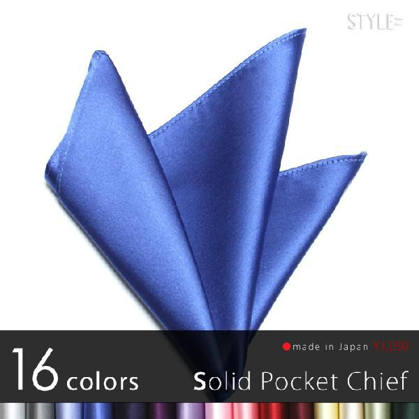 ポケットチーフ / ジャカード織 シルク / 無地 ブルー (青) 日本製