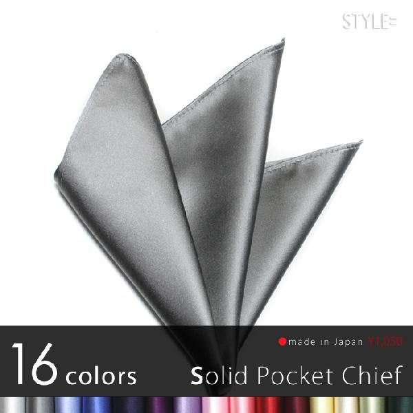ポケットチーフ / ジャカード織 シルク / 無地 ミディアムグレー(ダークシルバー) 日本製