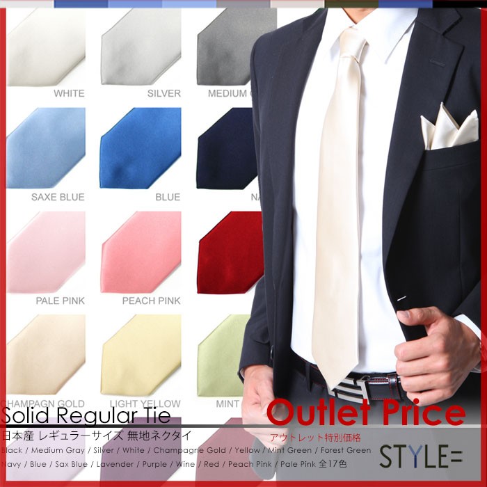 アウトレット 日本製 無地 ネクタイ 17色 シルク / レギュラー / レビューで 白 黒 シルバー など 全17色 ビジネス 就活 結婚式 フ
