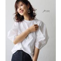 Tシャツ トップス カットソー 半袖 レディース 五分袖 30代 40代 50代 ゆったり 体型カバー 異素材 ハリ感 薄手 シンプル カジュアル 無地