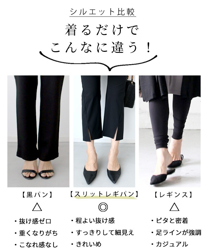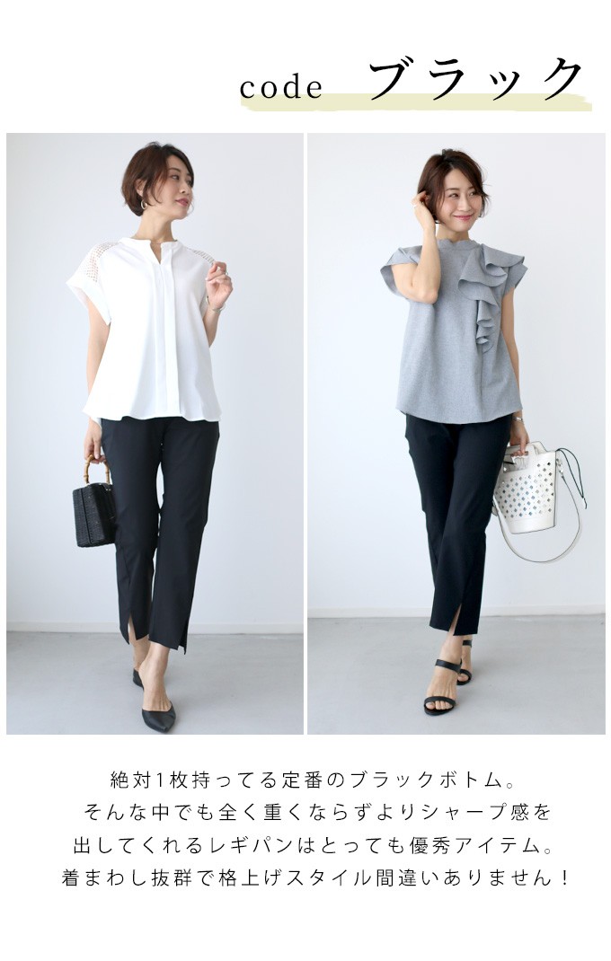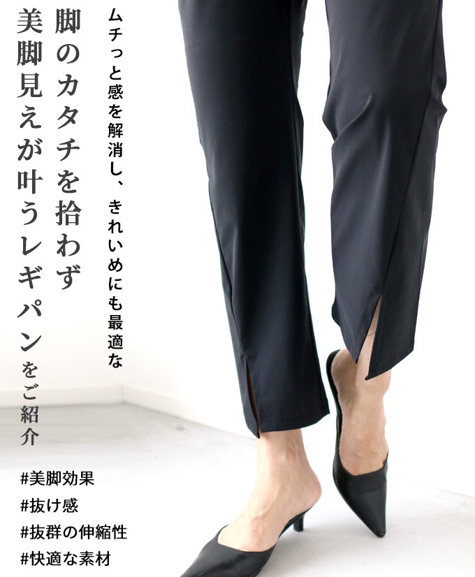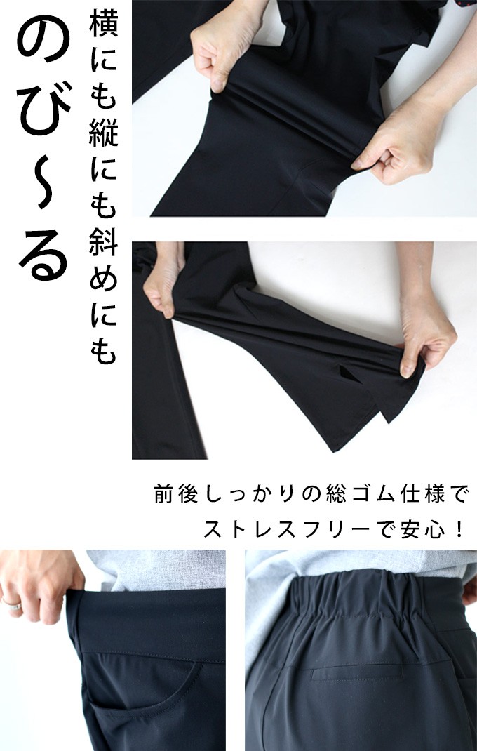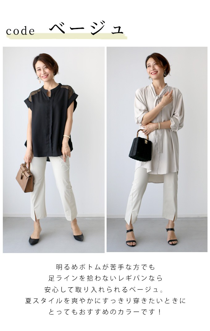 このシルエットとデザインに脱帽。 美脚見えNo.1の九分丈ストレッチパンツ 膝から下のラインを必ず美脚に導いて くれる計算されたシルエット。 脚長効果が狙える裾スリットカット& フェイクポケット。 足元にすっきり抜け感を作れる九分丈。 一度穿くとその美シルエットの虜に。 色違いで大人買いしたくなる 秘密が詰まった一本です。 POINT 大人女性がパンツに求めるのは この穿き心地! 穿いていてとっても楽な伸縮性、軽さと涼しさ。 伸縮自在なウエストゴム。 これら全部を兼ね備えた これからのシーズンにぴったりの 大人女性の為のストレッチパンツです。 生地感 サラッとフラット 薄く、ほどよくフィット& 心地良い伸縮性 フィット感のとても良い 薄手の素材です。 快適な伸縮性で、シルエットを キープしてくれます。 |