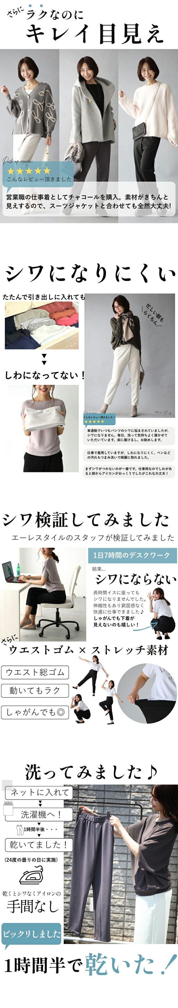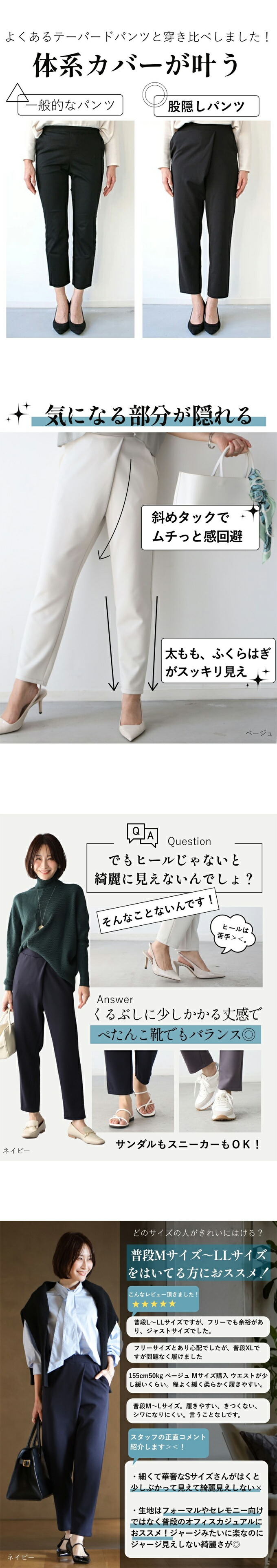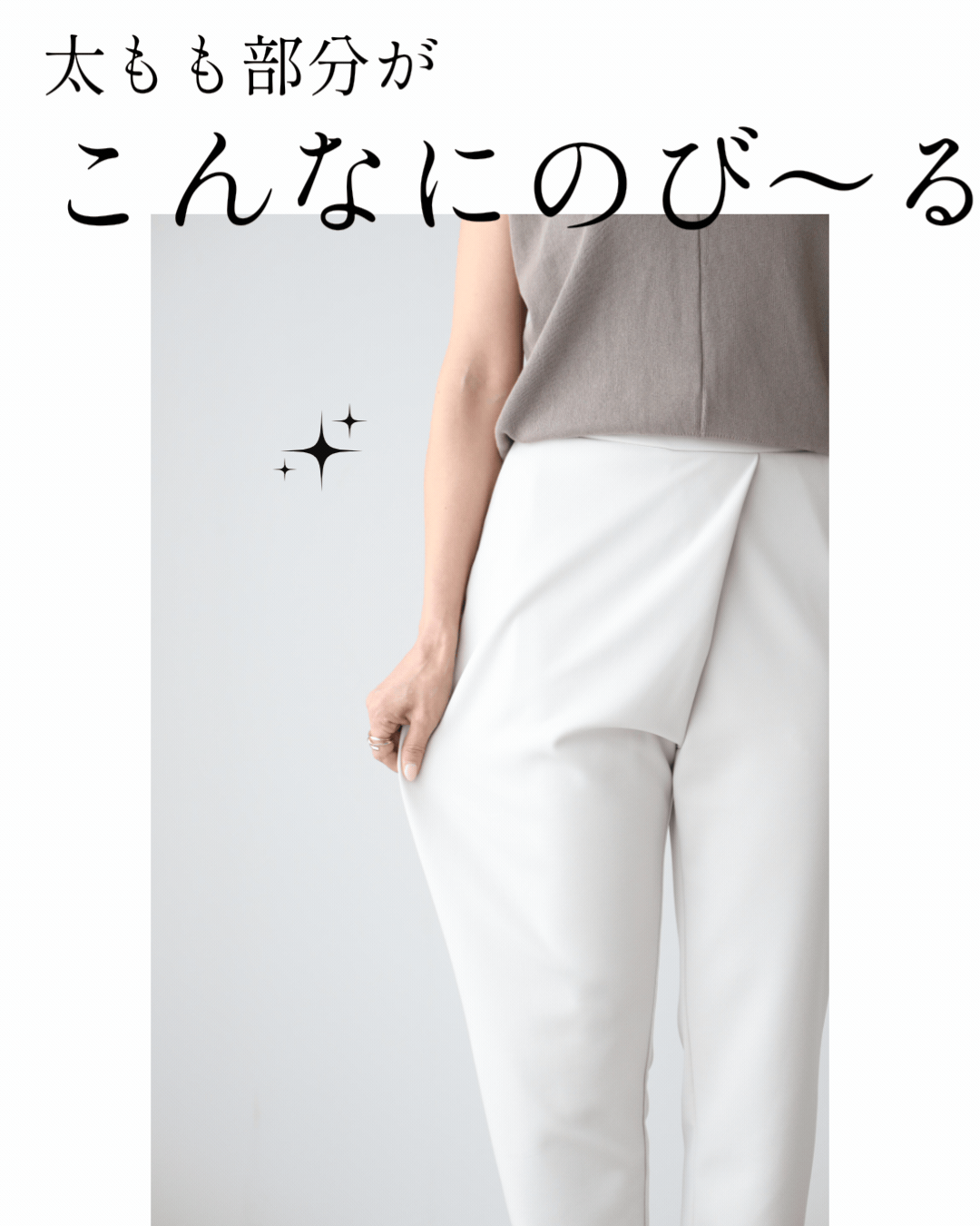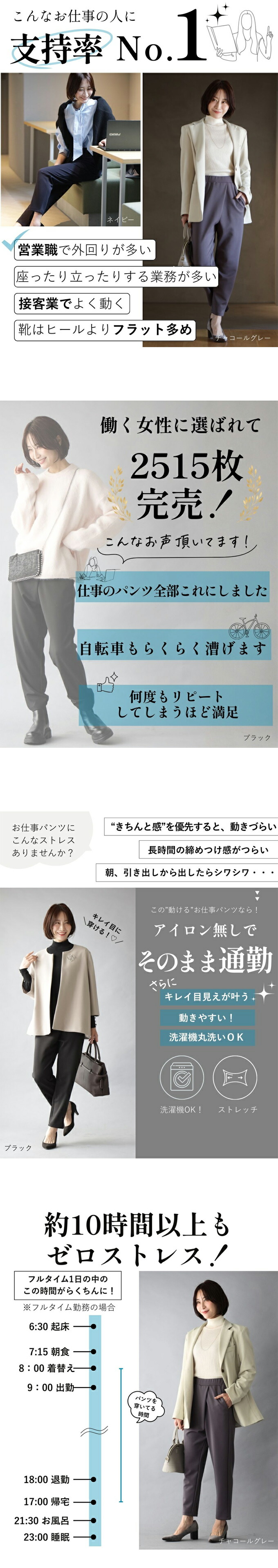 賢い大人は選ぶ! このパンツ、ずるい。 ・3Dストレッチ ・神技斜めタック ・絶妙テーパード あなたの想像を超える 最高のパンツ、 できました。 走れる、しゃがめる。 一日中穿いても苦しくない。 シワになりにくく安心。 縦横斜め、全方向に心地よく 伸縮する3Dストレッチ素材が、 上品な着こなしと 走れてしゃがめる抜群の着心地を 両方実現します。 つるりとした微光沢のなめらかな質感は、 オケージョンにも使えるきれいめっぷり。 シワになりづらく座り姿勢もラクなので、 式典やオフィスにもぴったりの アイテムなんです。 きれいめでシンプルな 名わき役っぷりで、 着回し力も抜群! オフィスや学校、結婚式など きちんと見えしてほしいシーンは もちろんのこと デイリーなカジュアルコーデにも お使いいただける優れものです。 |