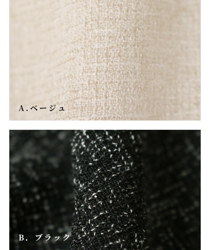 素材 ポリエステル 65% ・ レーヨン 35% 厚み なし 伸縮性 なし 透け感 (A)ややあり(B)なし 裏地 なし 重さ 約265g ポケット なし 手洗い 可 メール便 不可 生産国 韓国 | |