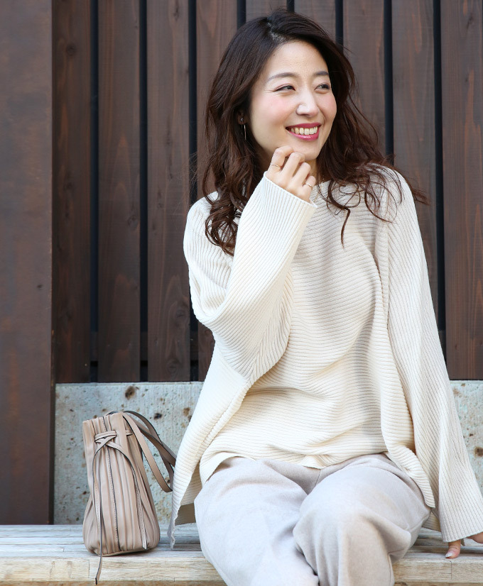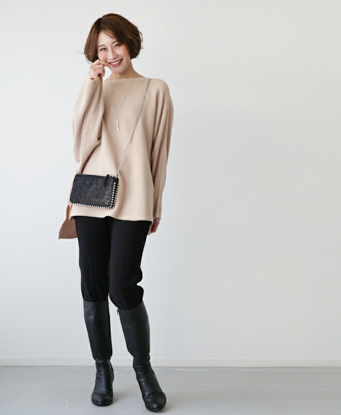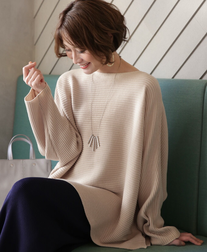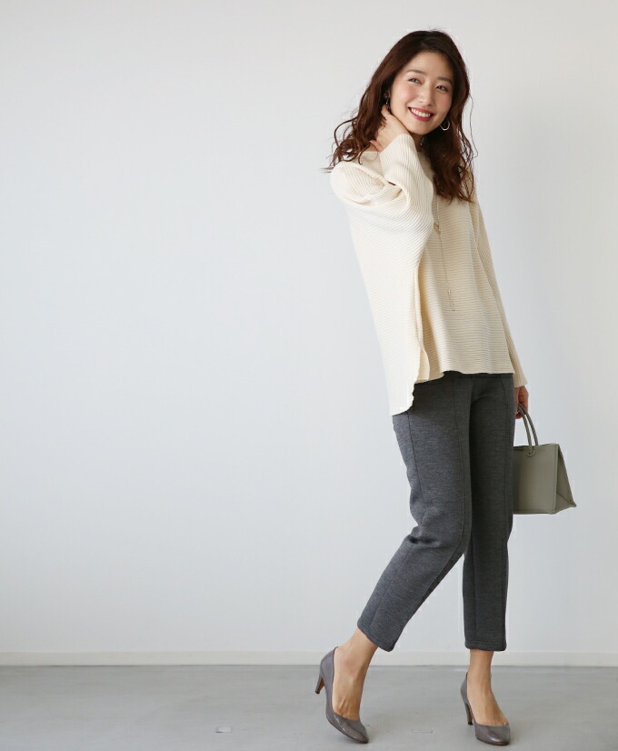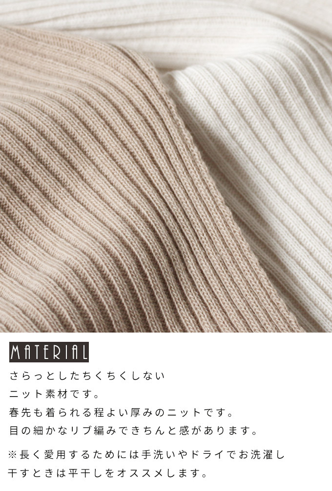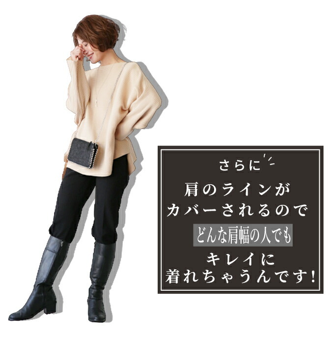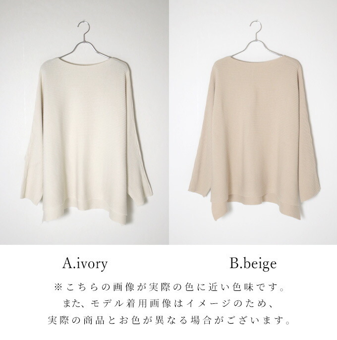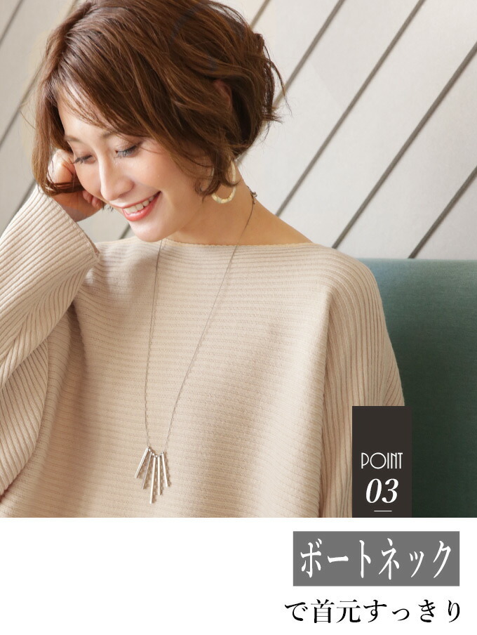 なんでストレスOFFなの? オーバーサイズでゆったりしているから 着ている感覚がないんです! でも大きく見えないような工夫があるんです! 1.柔らかくて軽いニット生地だから 落ち感&こなれ見えするんです! 2.横リブニットだけど 袖の切り替えがないから 手を下ろすと袖部分は縦リブ見えに だから太って見えないんです! さらに肩のラインがカバーされるので どんな肩幅の人でもキレイに着れちゃうんです! 3.ボートネックで首元すっきり 4.前後丈のアシンメトリーがお洒落感を格上げ♪ サイドスリットが脚長効果を高めてくれます◎ styling 細身ボトムが相性がいいんです! アンクルパンツやタイトスカートは バランス良く見せてくれます。 165cm以上の高身長さんは ストレートパンツではいてもバランス良く着られます! ワイドパンツフレアスカートはNG× Detail ゆったりドルマンシルエット アームホール・お腹周り ノンストレスなドルマンシルエット さらっとしたちくちくしない ニット素材です。 春先も着られる程よい厚みのニットです。 目の細かなリブ編みできちんと感があります。 長く愛用するためには 手洗いやドライでお洗濯し、 干すときは平干しをオススメします。 |