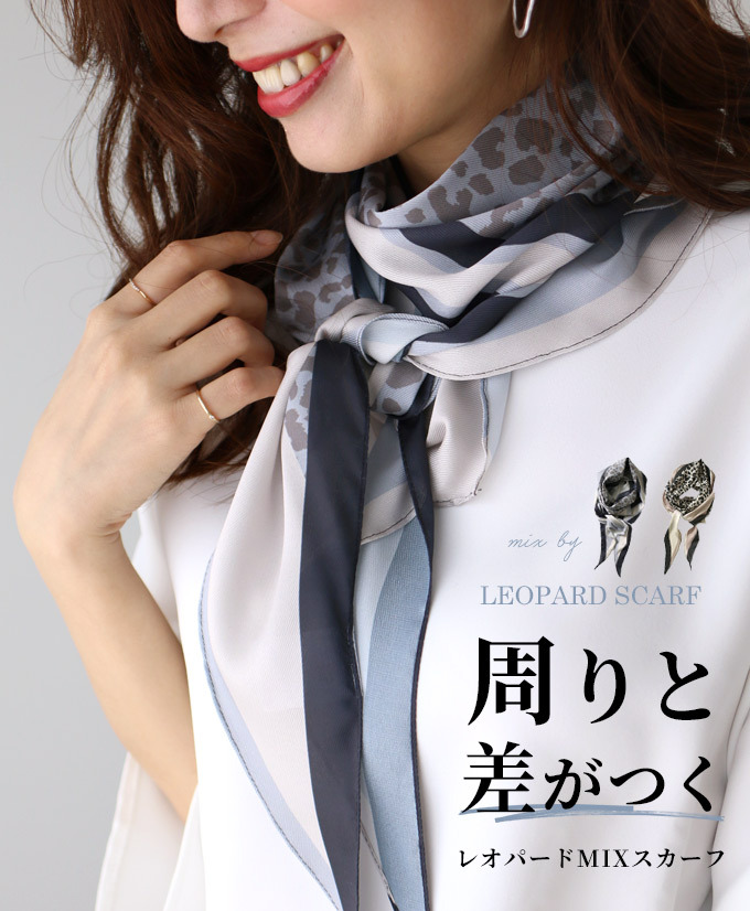 春夏はシンプルなコーデになって 物足りなさが出てくる、、 簡単にお洒落に見える方法は スカーフを取り入れること!! シンプルなコーデでも スカーフがあるのと無いのじゃ大違い! 周りと差がつくレオパードMIXスカーフを 取り入れてみませんか? スカーフ選びって難しい。 でもこのレオパードMIXスカーフは ・レオパード ・ストライプ ・配色 ・トーンを合わせた色 で、デザインされてるので 大人がつけても 派手じゃなくいやみがない。 どんな人でも取り入れやすい! 品がいいレオパードスカーフ レオパード柄のちょっと見えが お洒落のポイントに 定番の巻き方 肩にかけて二重に巻いて結んで完成! 先端が三角なので勝手にカタチが整うんです! スカート・バッグにカラーを合わせ グレースカーフで統一感のある仕上がり◎ ブラックトップスに差し色スカーフで 春らしさをプラス ニュアンスカラーのトップスと 淡いライトブルーのデニムに グレースカーフ。優しく上品な 雰囲気に◎ 暑くなったらカバンにつけても◎ ボリューミーな巻きアレンジで、 首元が華やかに映えるコーデ 全体をベージュトーンで統一。 同トーンでオシャレ感アップ♪ 上下の色使いに合わせ、 スカーフと小物も同系色に。 上品で高級感のある着こなしに◎ さらっとしていて、まとわりつかない シワになりにくい生地感 お家でお洗濯可能◎ |