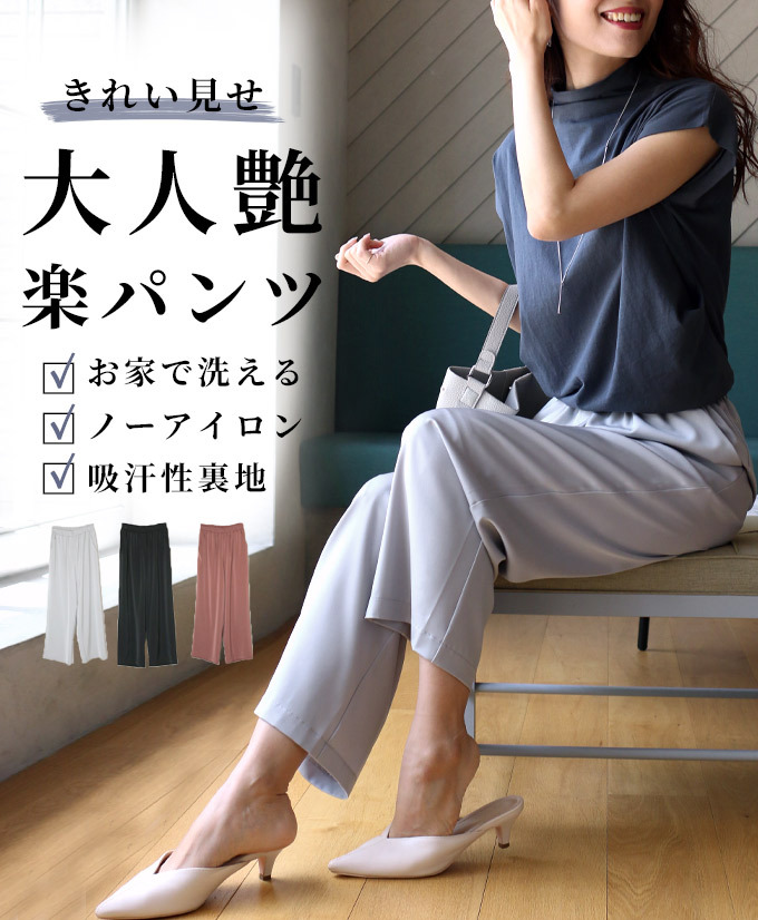 仕事でもデイリーでも活躍する。 楽なのに綺麗!絶対欲しいパンツ 艶パンツの楽ポイント 1.パンツのカタチ 程よいストレートワイド締め付けがなく楽! でもワイドすぎないからスッキリと楽が兼ね備わって 脚のカタチとお尻を拾いにくいんです! 2.ストレッチあるの裏地 特殊な裏地で夏もOK! オールシーズン対応♪ 横方向に伸縮性があって動きやすいんです! 吸汗性、速乾性に優れている裏地素材。 ポリエステルのパンツで裏地のないパンツは 汗をかくと汗染ができたり肌にひっつく。。 この艶パンツなら! 膝下まで裏地ありで膝裏の汗も気になりにくい♪ しっかり裏地で秋冬もOK!着心地も良い裏地素材です。 艶パンツの綺麗ポイント 1.艶感と生地感が高級見え 歩くと光で艶感がきれいに見える。 安っぽくないオトナ艶なんです! よくあるお仕事パンツをブラッシュアップして 艶パンツに変えることで上品さがワンランクアップ! 2.楽なのに綺麗!! 総ゴム楽チンなのにカジュアル感が薄く高見え効果あり styleオリジナルのオトナ艶の楽きれいパンツ 完成しました! 自宅で手洗い可能で簡単お手入れ艶パンツ シワになりにくいので扱い楽ちん ポケット深めデザインで携帯もすっぽり! つるんとした落ち感があり細見え効果あり◎ 足のラインを拾いにくい絶妙な生地感 |