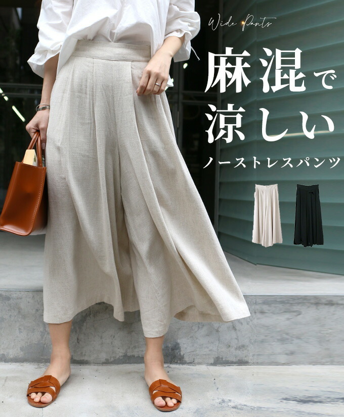 着ても楽ちん!お手入れも簡単! 麻混ワイドパンツ登場! 着ても楽ちんPOINT 「タック」 タックがしっかり入っているので お尻周り・太もも周りを締め付けない。 タック効果でシルエットを崩さず 誰でもきれいに着こなせる! さらに!お腹がぽっこり見えず スッキリ見える。 「ウエストゴム」 ウエストが後ろだけゴムなので 前INしても綺麗見え 「涼しい」 麻混で涼しく着られる ワイドシルエットだから風通しが良く まとわりつかない。 お手入れも簡単POINT 「自宅で洗濯できる」 お家で洗濯可能。 手洗いモードまたは手洗いで洗濯。 ※ブラックは色落ちの可能性がございます。 素材の性質上、湿りや摩擦による色落ちや他の 衣料に色が移ることがありますのでご注意ください。 「さっとアイロンするだけ!」 麻100%生地はアイロンが大変・・・ でも麻混素材だから少しのアイロンでOK! ワイドパンツでしっかり 丈があるのが嬉しい! ガウチョパンツは 古くみえる 靴に迷う 足が短く見える ワイドパンツは 飽きが来ない どんな靴でもOK! 足が長く見える しっかり89cm丈 低身長さん 標準さん・高身長さん・どんな身長の方でも 安心丈感を実現! スカート見えパンツだから パンツ苦手さんでも◎スカート苦手さんでも◎ パンツ派さん注目! 動きにくさありません! スカート派さん注目! 身体のライン360度カバー! 下半身コンプレックスを 気にしない1日を叶えます。 どんな色のトップスでも合わせやすい ベーシックカラーパンツ! 嬉しいポケット付き サイドファスナーで着脱楽ちん 裏地がないので気になる方は ペチコートのご着用おススメします。 |