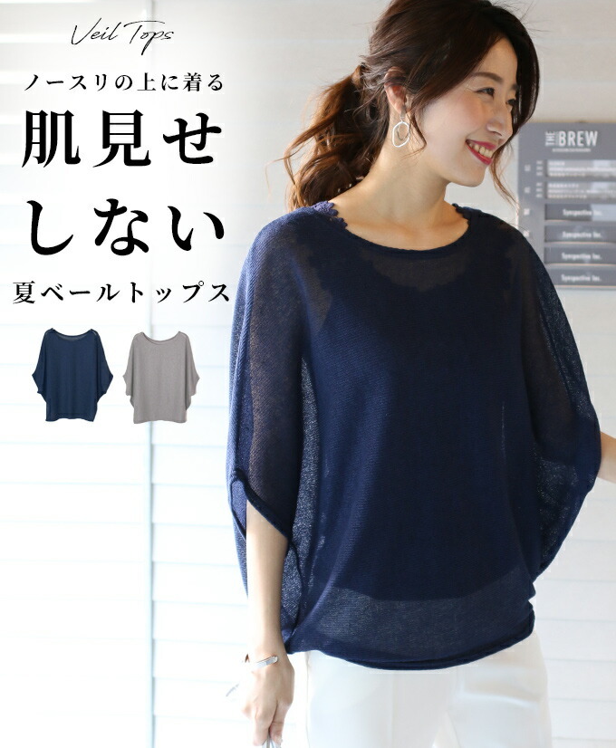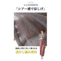 真夏ノースリーブ1枚では 露出が気になる、、、 焼けたくない、、、 そんなアラフォー女性のための ノースリーブの上に着る ベールトップスが登場♪ トップスPOINT1 「シアー感で涼しげ」 風通しが良く涼しく着られる透かし編み素材 「ドルマンシルエット」 ぴったりしすぎず 夏の暑い季節を涼しく過ごせる 「体型カバー」 気になる二の腕・ウエスト・ヒップ周りを さり気なくカバーしてくれる。 「ネックライン」 つまりすぎず広すぎない 抜け感のある 女性らしいネックライン 「七分袖」 肘が隠れる ちょうどいい袖丈 夏に絶対欲しい!ベールトップスです! ベールトップスの着こなし方ご紹介♪ 合わせるインナー 透け感なく着こなしたい方は 同系色のインナーと合わせることがオススメ! さらに体型カバーしたい方は ゆったりインナーと合わせて下さい。 パンツコーデ ワイドパンツは前インで すっきり着こなせる。 細身パンツはインせず 着てもOK! スカートコーデ 落ち感があるものはインせず着られる Aラインスカートは前インですっきり見え ローゲージでゆったりめに編まれた 通気性の良いニット地です。 しなやかに体に沿い、落ち感も楽しめる サマーニットです。 |