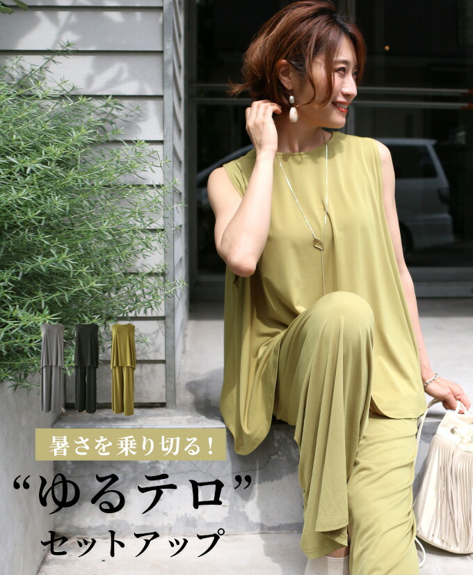 暑い季節は汗も気にせず快適に過ごしたい! 毎日気温が30℃超える真夏日に最適! 涼しく快適に過ごせちゃう Set upが登場しました!! 快適POINT1 ●ゆるてろ生地で涼しい! テロンとした生地感だから 肌に張り付かず涼しく着れる! ●アームホールが開いてて涼しい! アームが脇にぴったりしていないので 脇の汗地味が気にならない! ⇒インナーを着用してお楽しみください ●締め付け感なく楽ちん! ウエストも総ゴムで超ラクチン ●全く体型がきにならない 体型カバーも叶うシルエット! トップスがAラインでお腹周りカバー ボトムは太ももをひろわないフレアワイドパンツ セットできるとお尻も半分隠れて気にならない♪ ●お手入れも楽チンで扱いやすい! シワにならない!洗ってもすぐ乾く♪ ★部屋着のような快適さなのに外に出れる! 1日の休日のタイムスケジュール 休日の朝起きたら とりあえずこのセットアップに 着替えて家事スタート♪ 子供たちとそのまま公園へ♪ 日差しが気になるのでちょっと羽織って ゆっくり部屋でくつろいでラクチン そんなにごろごろしてもシワにならない 休日アウトドア ノンストレスな着心地と動きやすさで 休日アウトドアも快適◎ このセットアップがあるだけで 真夏の暑い日でも こんなに快適に1日が過ごせる♪ ★スタイリング 使いまわし抜群!カラー別のセットアップ ★詳細 ストレッチがあって伸びがいい! 透け感があるのでインナーやペチパンツを穿いてください♪ |