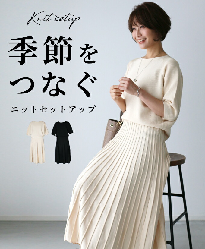 何を着たらいいか迷う季節の変わり目、、、 秋の始まりからロングシーズン使える ちょうどいいニットのセットアップ トップスデザイン 「ハイゲージで上品さをキープしたニット」 1.控えめな五分袖ぽわん 2.見ごろゆったりで体型カバー◎ ボトムデザイン 「2段プリーツのミモレスカート」 1.お腹周りは細く細かいプリーツにすることで気になるところをカバー 2.ふんわりAラインシルエット 3.ミモレ丈だから足首が見えることでぬけ感ばっちり! トップスもボトムも使い勝手がいいデザイン。 上下で少しデザインが違うから まるでコーディネートしたみたいにお洒落上手◎ 「季節の変わり目に活躍!」 分厚いニットではないから、 秋の始まりからロングシーズン使えます◎ 秋向け→アウター&ショートブーツ 単品コーデ 少ないアイテムで上手に着まわせるのが便利◎ しっかり編まれたハイゲージニット。 上品できちん感があり、きれいめな印象です。 ほどよく肉厚なニットで、体のラインを 拾わず安心感があります。 アイボリーはやや透け感ありのため ペチコートをオススメします。 |