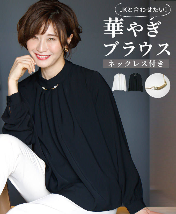 ジャケットとの相性抜群! 1枚でも存在感を発揮 華やぎブラウスが登場 ジャケットと合わせたい理由! 『ロールカラー』 ロールカラーとは 首まわりをぐるりと 円状に巻いたような襟のこと JKに合わせた時に エレガントで上品な印象をつくる! 上品に見せたいときにおすすめ 『ネックレス』 アクセントのネックレス付き! ちょうど首のラインに沿って ついてるので JKをきても隠れることなく着られちゃう♪ 取り外し可能 ※洗濯時取り外してお洗濯して下さい! 『ドレープ感』 ドレープ感が美しくなるデザイン ドレープがあるから ボリュームができて華やかさアップ! ほんのり広がり感があって 体型をひろわない! JK羽織って前から見た感じがきれい ★隠れPOINT 後ろボタン 身頃がゆったりだけど 首元がバックボタンできちんと感があり! お仕事・Occasion なめらかな生地・艶感 |