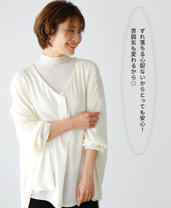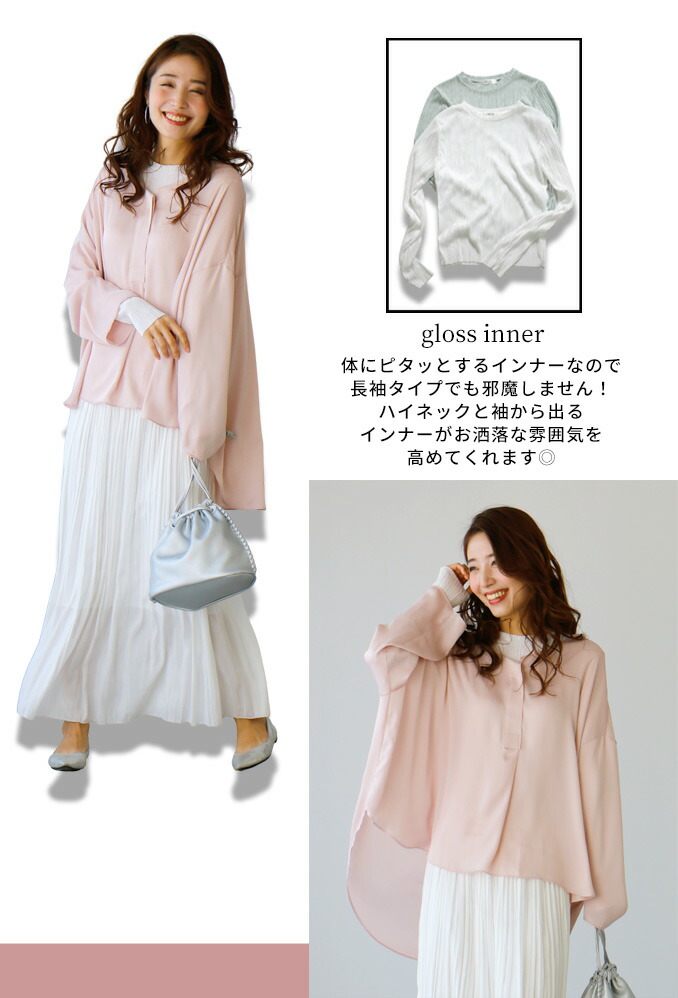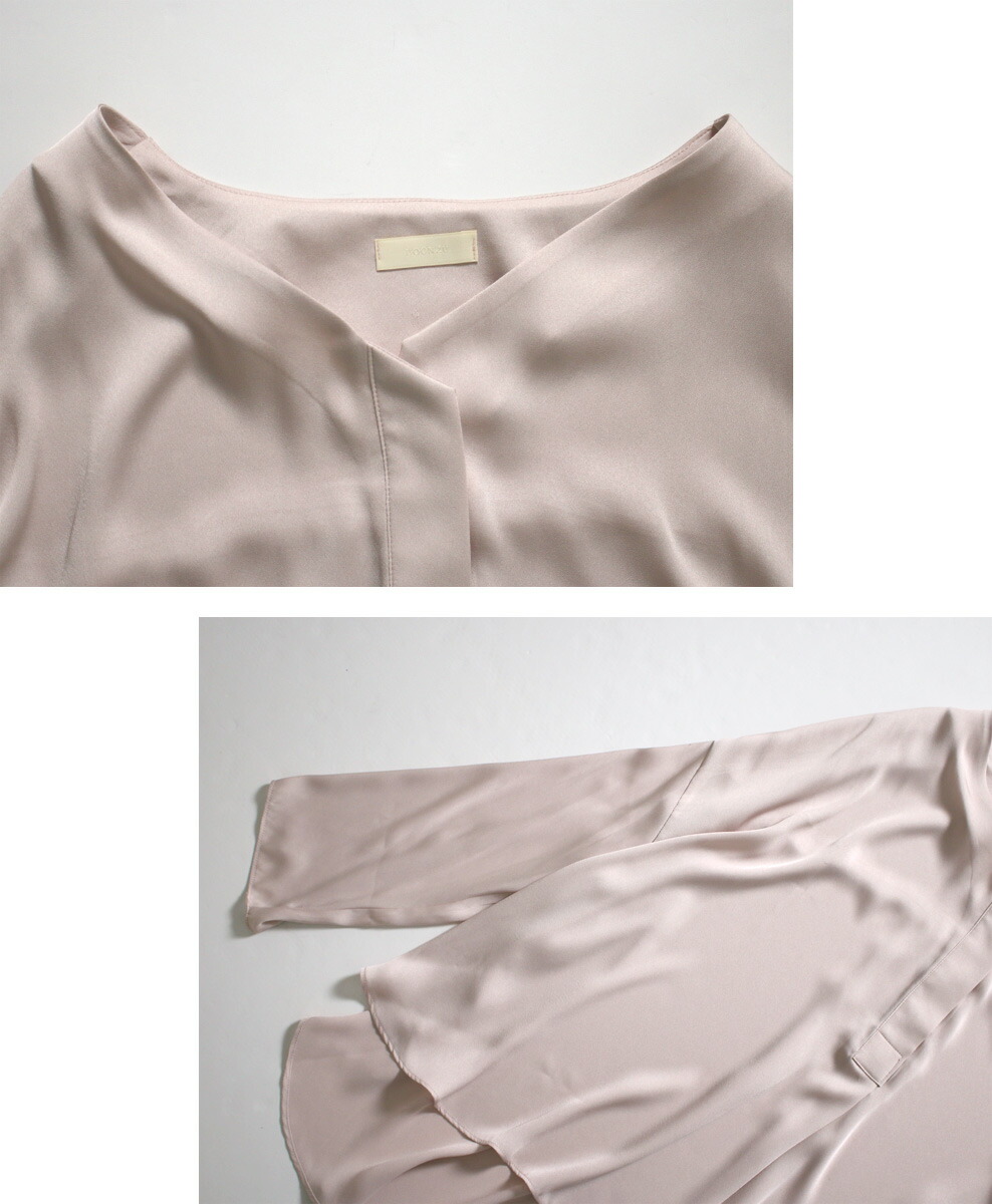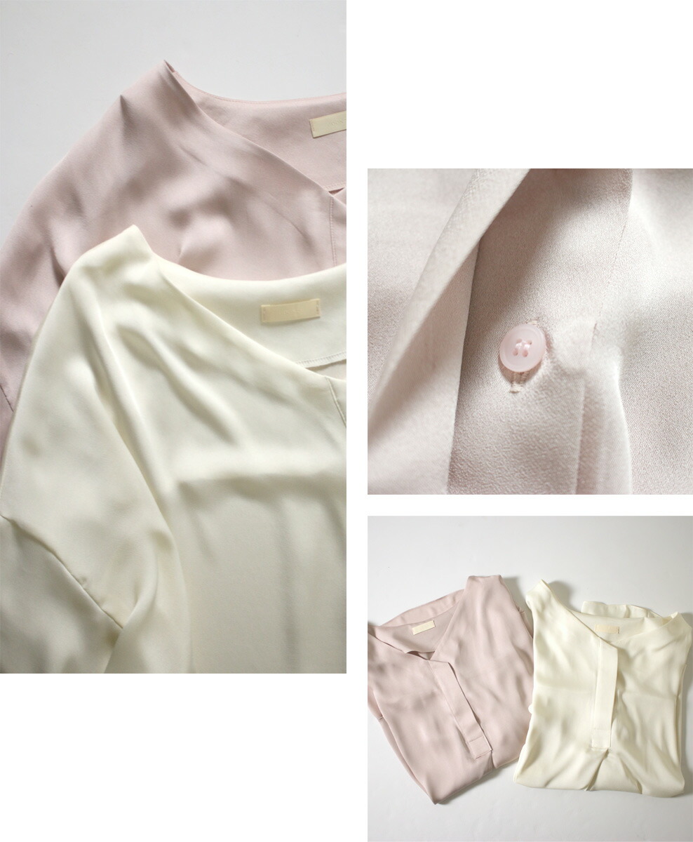 カジュアル要素があるきれいめ感 リラックスできる大人オーバーブラウス 大人の休日ブラウス登場 レイヤーが必須! インナー魅せを楽しむのが大人流ブラウス! 1枚では着ない!コーデ楽しむのが◎ 大人カジュアル必須point 『揺れ感と艶感』 オーバーサイズ感と きれいめ、艶っぽさが必要! 揺れ感と艶感があるブラウスで 超オーバーサイズだから さらにゆったり感が増して◎ 生地感がとろとろサラサラで 落ち感もつくってくれてます。 『バックスタイルの拘り』 抜け感を作るネックライン! 前後で大きく開いたネックラインデザイン ちょうどいい女性らしいシルエットを作ってくれます! バックにはタックがあることで うしろに流れる落ち感の動きを さらに美しくしてくれます◎ 『ゆるピタコーデが叶う』 バランスがいいゆるピタコーデ! タイトスカートやスリムパンツは相性抜群 ヒップも隠してくれる丈感なので安心! 袖ロールアップでポワン感を演出 |