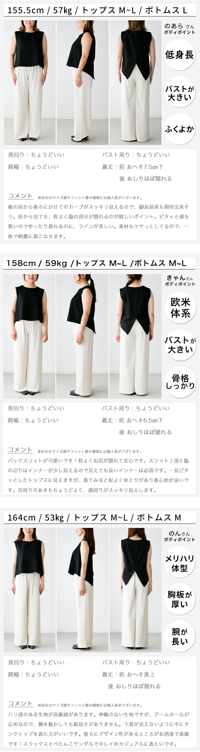| 試着モデルの詳しいプロフィール |