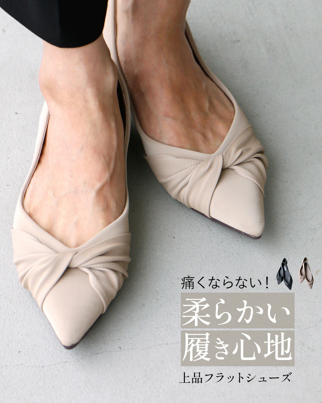 痛くならない!柔らかい履き心地上品フラットシューズ