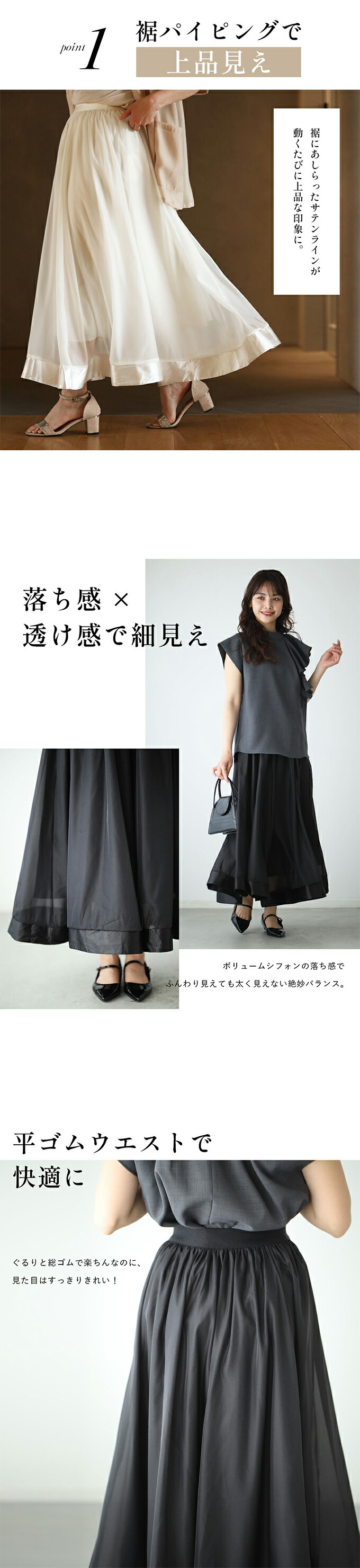 サイズ Free 着丈 88cm ウエスト 60-98cm(ゴム) ヒップ 110cm 裾幅 116cm サイズの測り方につきましては統一しておりますが、 2〜3cm程度の誤差が生じる場合や、生産時期によりサイズが多少異なる場合がございます。 ニット商品は、伸縮する素材のため 通常の2〜3cm誤差よりも誤差範囲が大きくなる可能性がございます。 何卒ご了承くださいませ。