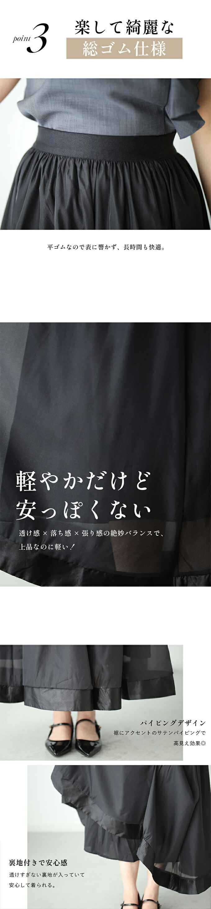 素材 本体:ポリエステル 100% 別布:ポリエステル 94%・ポリウレタン 6% ウエストゴム部分:ナイロン 94%・ポリウレタン 6% 厚み なし 伸縮性 なし 透け感 なし 裏地 あり 重さ 261g ポケット あり 手洗い 可 メール便 不可 生産国 中国 | |