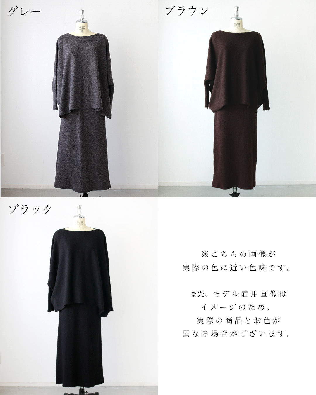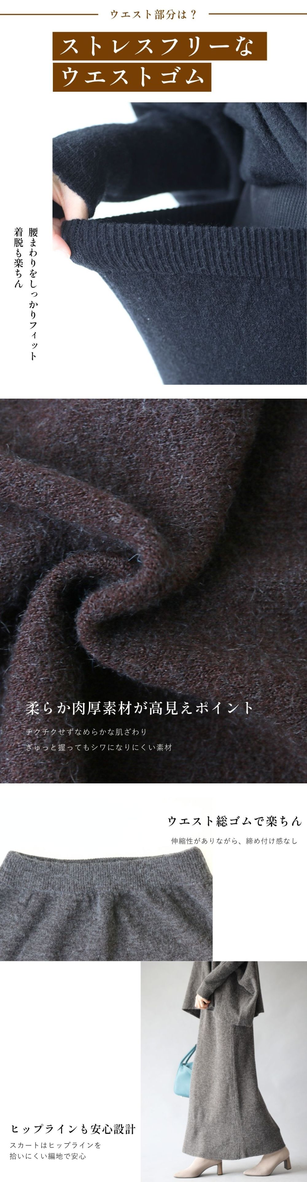 素材 アクリル 44%・ポリエステル 31%・ナイロン 25% 伸縮性 あり 透け感 なし 裏地 なし 重さ トップス550g スカート約g ポケット なし 手洗い 可 メール便 不可 生産国 中国 | |