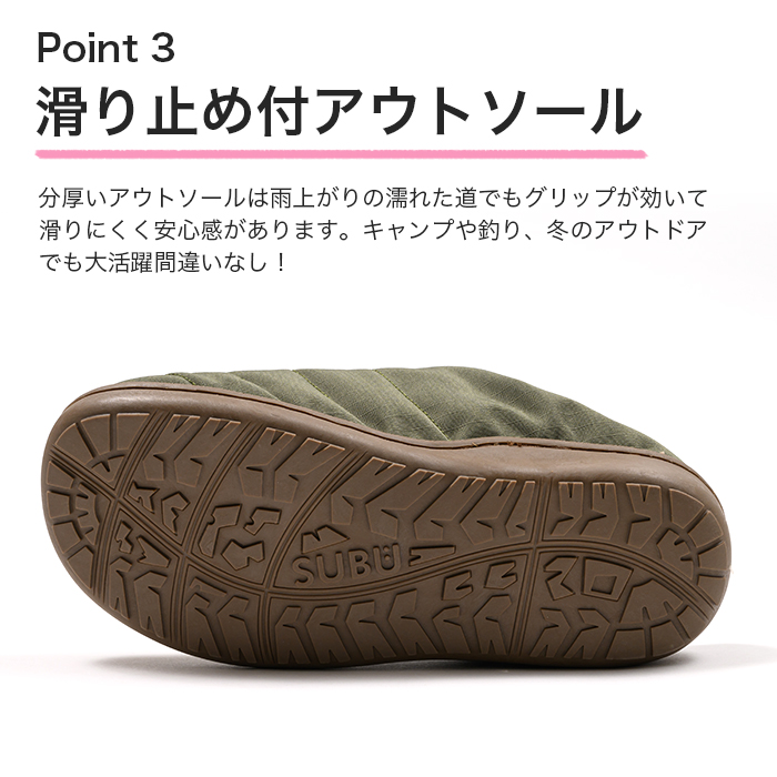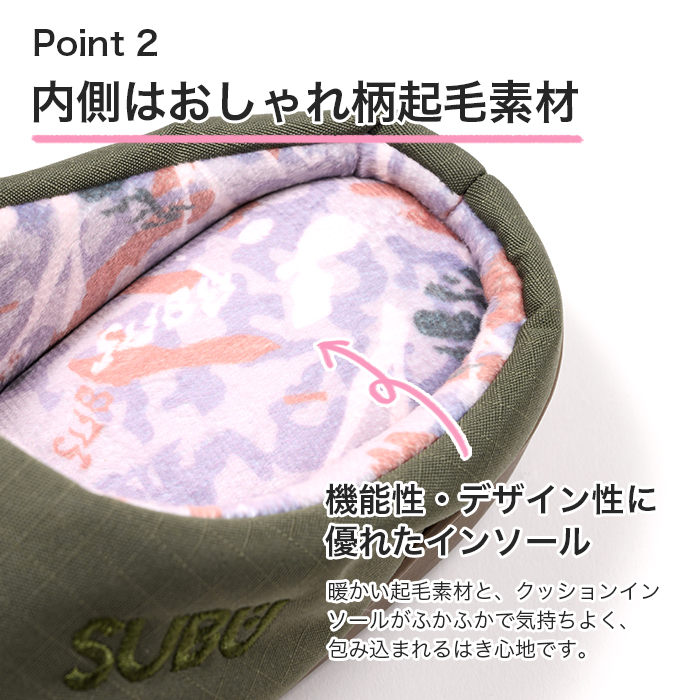 スブ 難燃 フィールド SUBU サンダル スリッポン モデル おしゃれ 外履き スリッパ 起毛 暖かい 防寒 ダウンサンダル キルティング 爆買 イベント