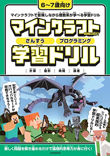 マインクラフトで学習するシリーズが新登場 マイクラを題材に、楽しく問題を解いていくだけで、 自然と算数やプログラミング的思考力など、 理数系のセンスが身に付くドリルです。 「数をかぞえる」「たし算・ひき算・かけ算」 「図形」「推理・論理」など、6〜7歳(小学一年生前後)の お子様に適した内容になっておりますが、それ以下の年齢の お子さんがチャレンジする際は、保護者の方が必要に応じて サポートしていただければと思います。 マイクラをやったことのある子ならばみんな知っている キャラクターたちが次々登場し、数々の問題が出題されます。 それを解いていくことで冒険のストーリーを進めていき、 最後にはボスのエンダードラゴンを倒せるというスタイルですので、 飽きずに楽しく取り組めて、理解力も身に付きやすくなっています。 この本では、算数や、プログラミング的思考を鍛える問題が たくさん掲載されておりますが、じつは問題自体がゲーム攻略のヒントに なっています。また、「マイクラ攻略まめちしき」では、実際に ゲーム中に役立つ攻略情報を掲載していますので、勉強の合間に 一息入れることができるのも、このドリル