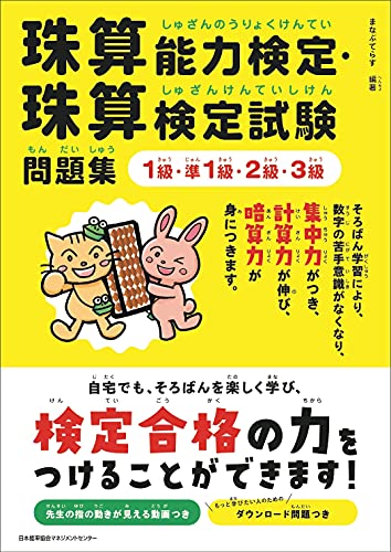 【内容紹介】 本書は、日本商工会議所主催の珠算能力検定と「まなぶてらす」主催のオンライン珠算検定に完全対応した問題集です。珠算検定3級?1級の合格を目指す人はじめ、スピードアップしたい、そろばん学習を再開したい人にも適しています。 かけ算・わり算の基本から小数の計算、スピードアップのテクニックまで、そろばん段位取得者が実演しながら説明する動画をQRコードから観ながら学習できます。 さらに本書掲載以外にもダウンロード問題を豊富に用意しており、さまざまなパターンの問題を練習することができます。 【目次】 序章 そろばんの計算方法とかけ・算わり算の復習 第1章 珠算検定3級:上達のコツと計算方法 珠算検定3級練習問題(かけざん、わりざん、みとりざん)全9回 第2章 珠算検定2級:上達のコツと計算方法 珠算検定2級練習問題(かけざん、わりざん、みとりざん)全8回 第3章 珠算検定準1級・1級:合格合格をつかむ3つの練習方法 珠算検定準1級練習問題(かけざん、わりざん、みとりざん)全8回 珠算検定1級練習問題(かけざん、わりざん、みとりざん)全8回