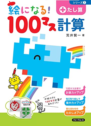 基礎計算の習熟法として有名な100マス計算に、“絵が出る”おまけをつけたドリル たし算編。 計算したあとに、指定された答えのマスをぬって、絵を完成させます。 ・100マス計算をした後どんな絵になるか楽しみがある。 ・終わらせて色ぬりしようと計算がはやくなる。 ・絵をぬることで自然と応え合わせができる。 家庭や学校で「おまけ効果」を存分に活用してください。