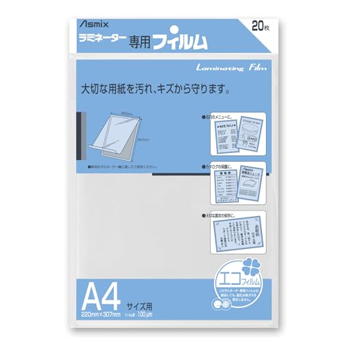 アスカ(Asmix) ラミネートフィルム A4サイズ 100μ 20枚入り BH-113