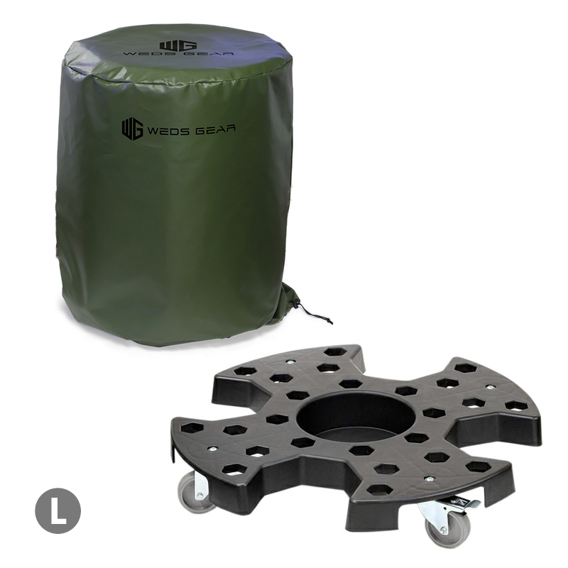 撥水タイヤカバー ダークグリーンとタイヤキャスターのセットL 大型車〜SUV向け 収納袋/タイヤ保護カバー/タイヤラック/タイヤ台