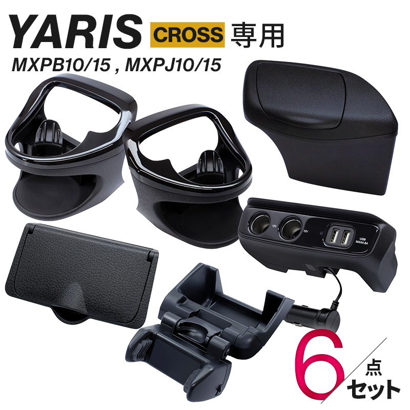 ヤリスクロス専用 ドリンクホルダー左右+スマホホルダー+電源BOX 6点セット 車 カスタム パーツ アクセ 内装 エアコン 保冷保温 ETCカバー ゴミ箱 増設ソケット