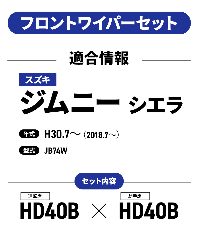 【商品名】スズキ ジムニー シエラ 撥水コートデザインワイパー 2本セット 【セット内容】 【適合情報】 【品番(コード)】HD40B(4975793220750)/HD40B(4975793220750) |