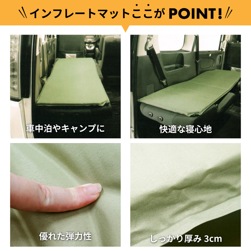 車中泊・キャンプ等で活躍するインフレートマットです。