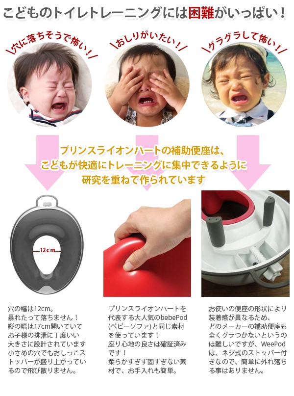 座り心地が良く、楽しくトイレトレーニングできるプリンスライオンハートの補助便座です。