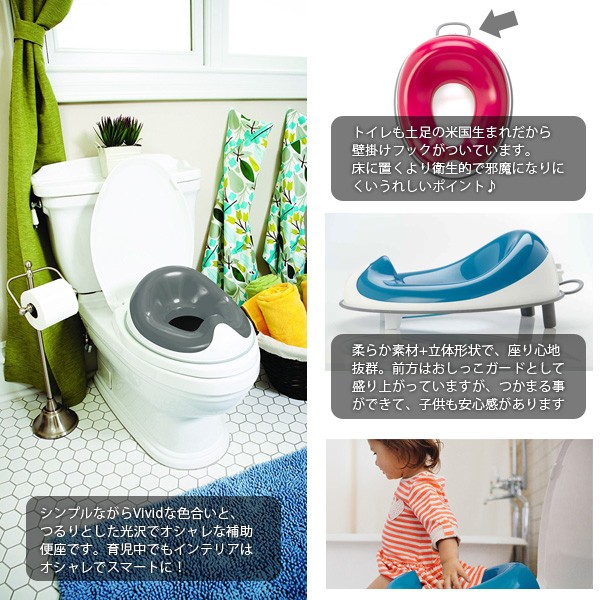 台座等はなく、洋式便座に固定するタイプなので、大人が使う時は外して壁に掛けておくことができ場所をとりにくいので、来客があっても恥ずかしくなくスマートに使えます。