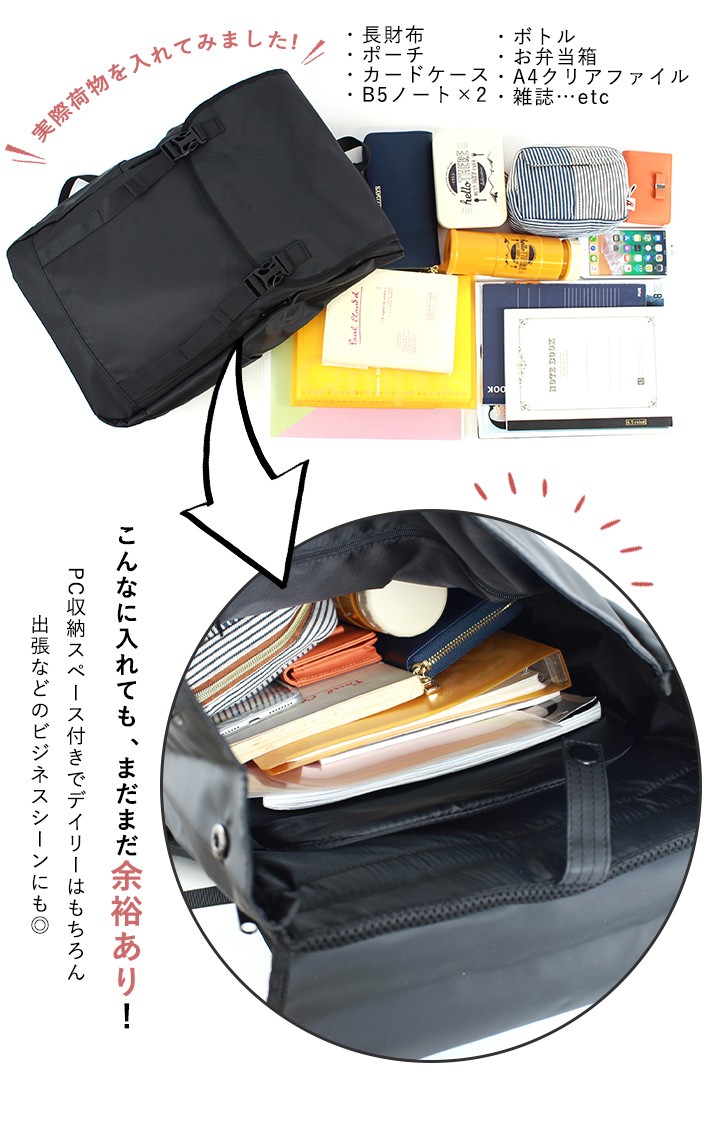 PC収納付きなのでデイリー使いはもちろん出張などにも活躍してくれる!