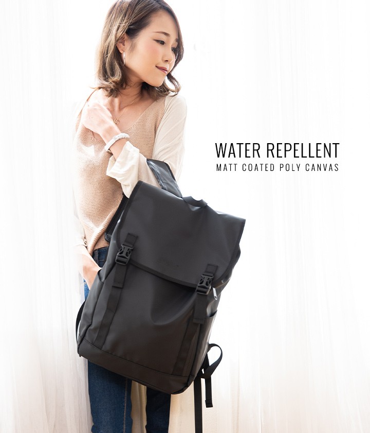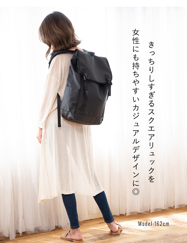 お堅くなりすぎないスクエアリュックをカジュアルな印象にフラップデザインに!