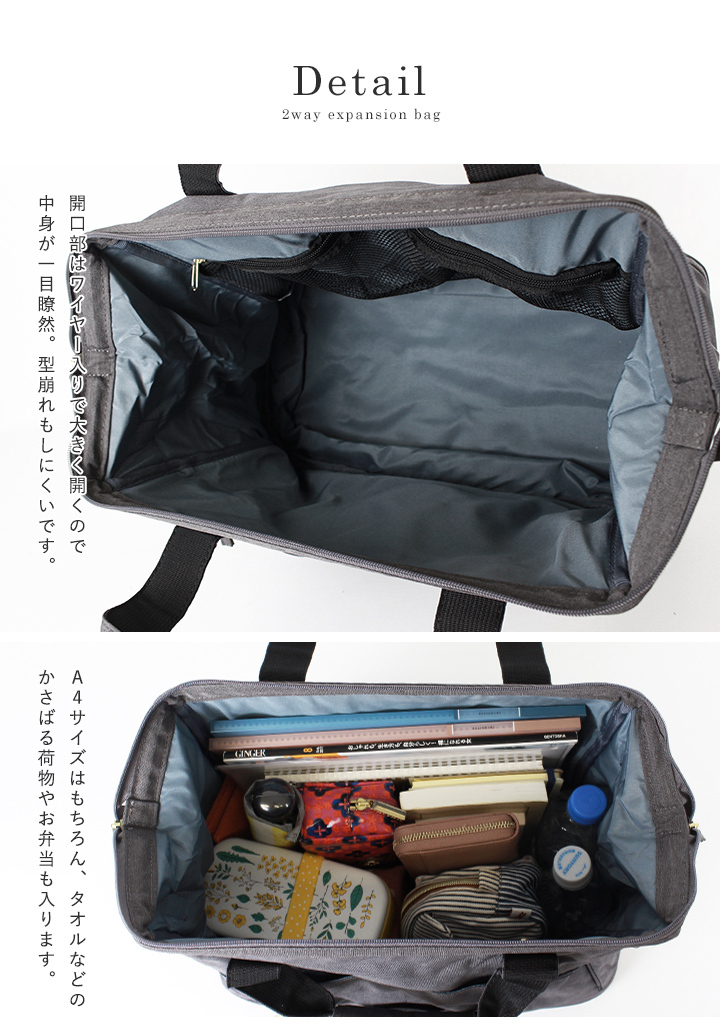 縦の容量が増えるのでお土産などの急な荷物にも対応できます。