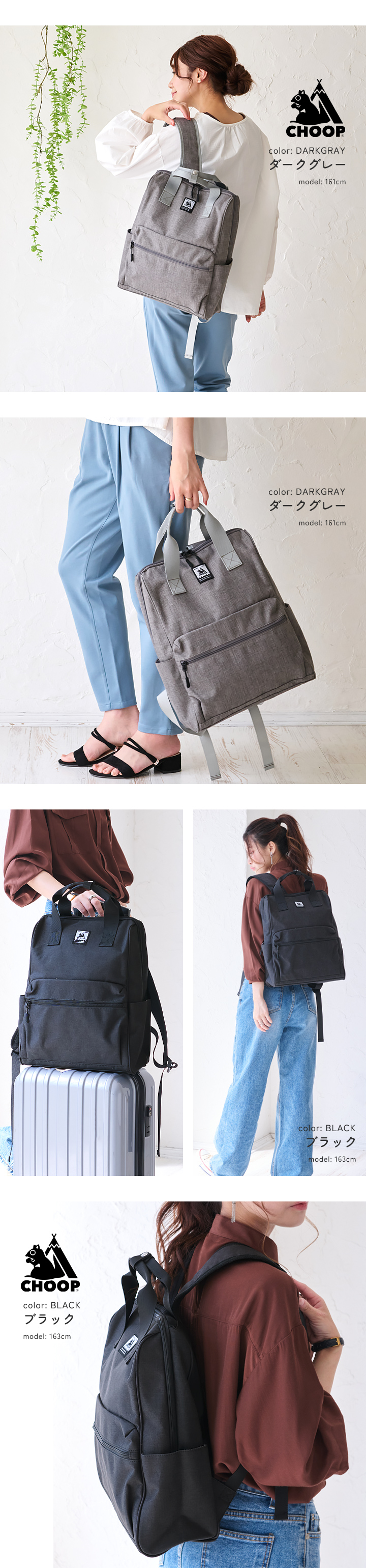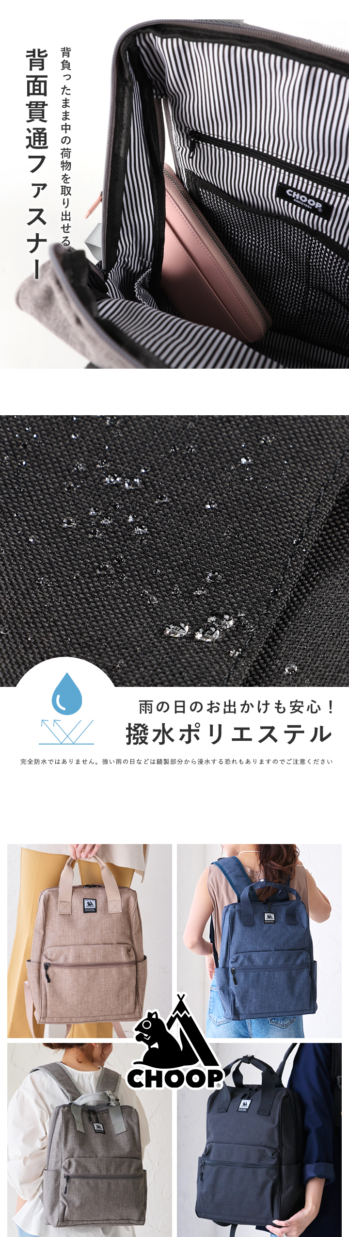 CHOOP リュック レディース 大容量 軽量 2WAY バックパック メンズ A4 通勤 通学 旅行 出張 撥水 キャリーオン 持ち手 可愛い おしゃれ
