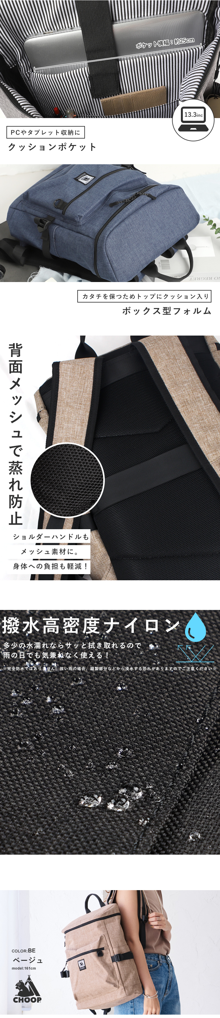 CHOOP リュック バックパック レディース メンズ 通勤 ビジネスリュック 大きめ 大容量 リュックサック pc パソコン収納 撥水 多機能 13.3インチ
