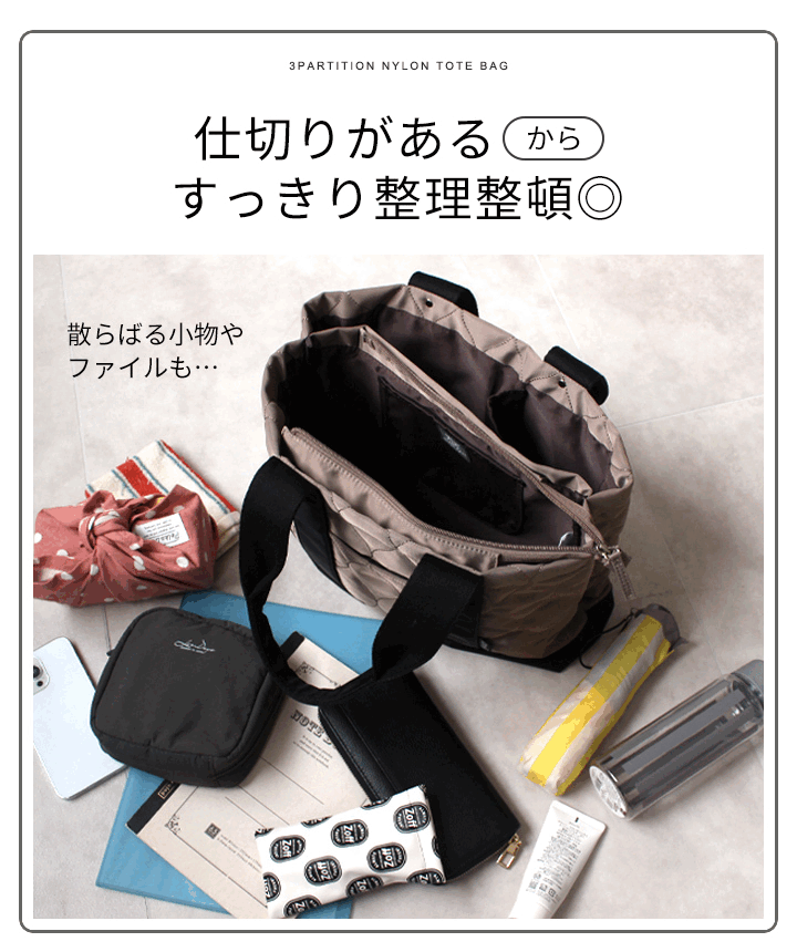 トートバッグ レディース 軽い a4 大きめ ナイロン 撥水 トート バッグ 通勤 軽量 仕切り付き 鞄 かばん 30代 40代 50代 LIZDAYS