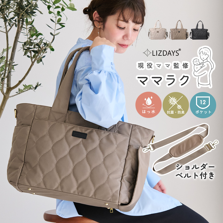 LIZDAYS ママラク レディース マザーズトート ショルダー ママバッグ 大容量 機能ポケット ショルダーパッド ふかふか 撥水 おしゃれ