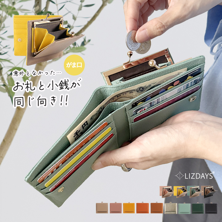 【映画・ドラマ使用】LIZDAYS がま口 二つ折り財布 レディース 本革 財布 折りたたみ 2層 お札 小銭入れ 同じ向き コンパクト liz06