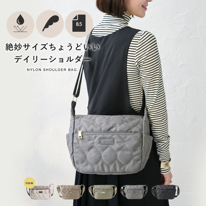 ショルダーバッグ レディース ナイロン 撥水 はっ水 キルティング 軽い 軽量 大人 きれいめ 肩掛け シンプル 斜め掛け 大人 B5 ファスナー