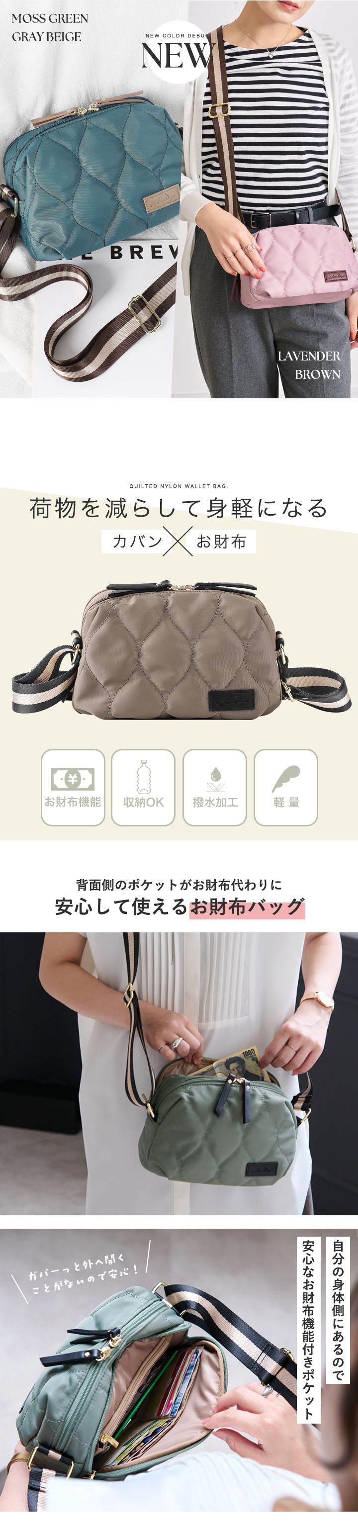 LIZDAYS ショルダーバッグ レディース 軽い 小さめ ショルダー バッグ お財布ショルダー 撥水 ナイロン 上品 かわいい 旅行 お財布機能
