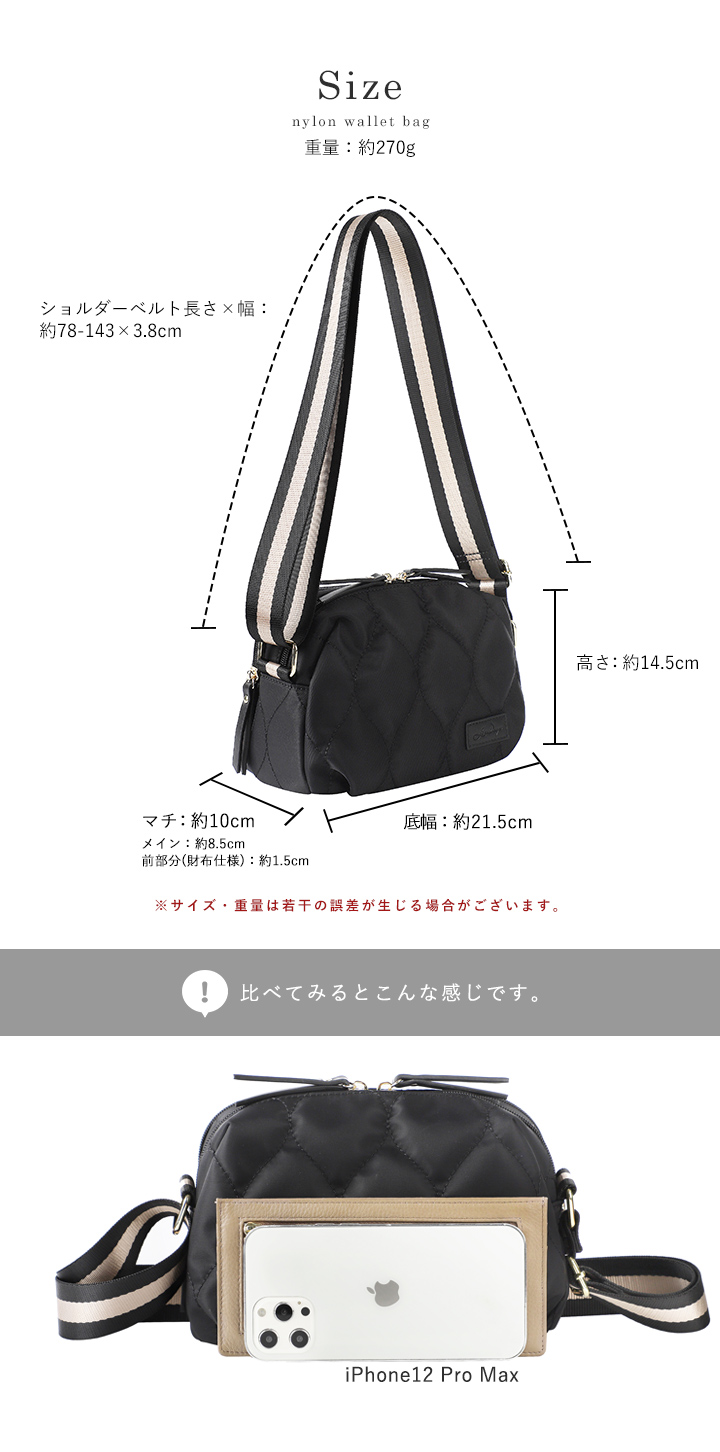 ショルダーベルト長さ×幅:約78-143×3.8