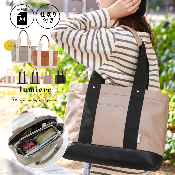 トートバッグ レディース 大きめ a4 ファスナー付き 通勤 お仕事バッグ 大学生 ママバッグ シンプル 上品 丈夫 大容量 LIZDAYS lumiere