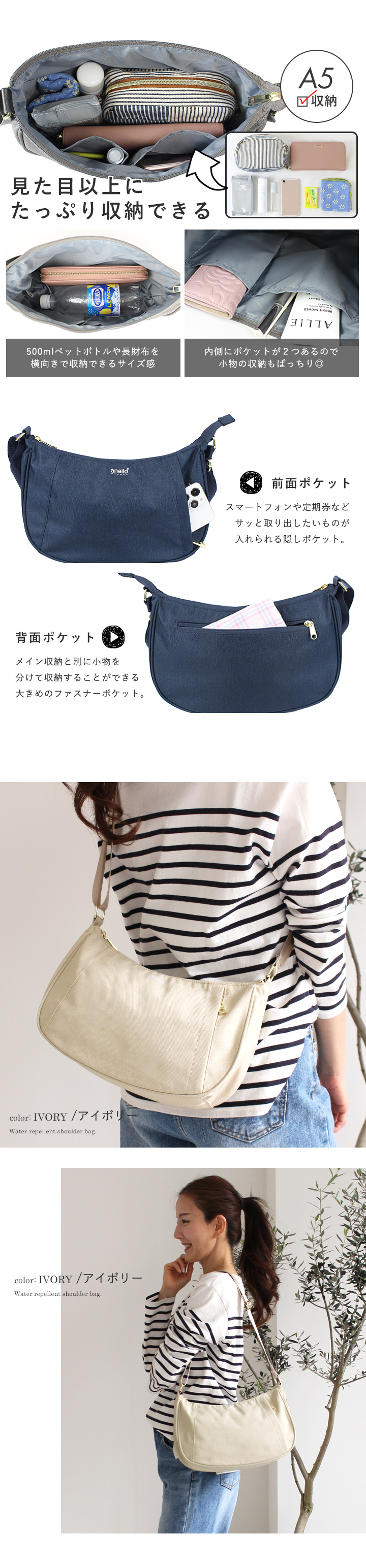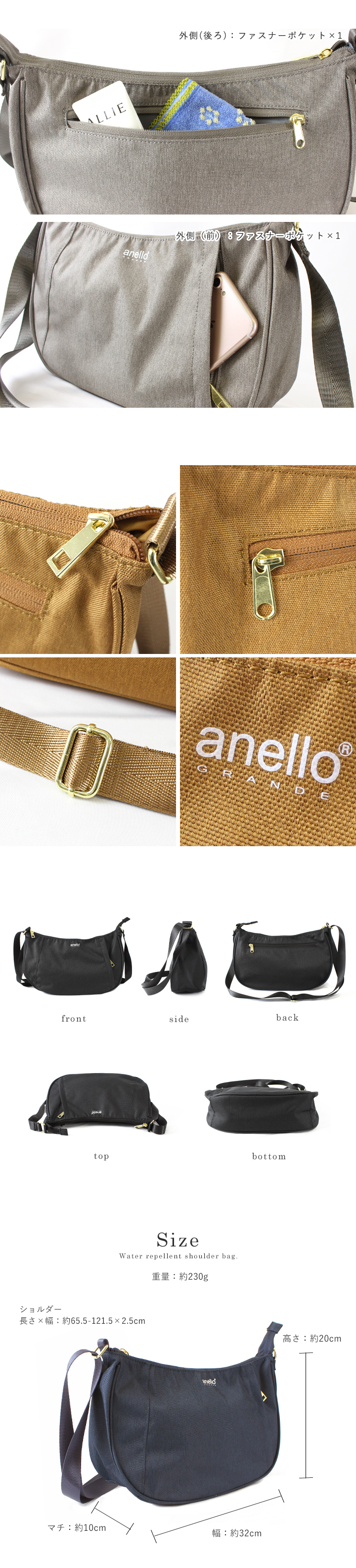 anello アネロ ショルダーバッグ レディース メンズ ユニセックス 斜めがけ 大人 軽量 ショルダー 撥水 男女兼用 肩掛け 軽い