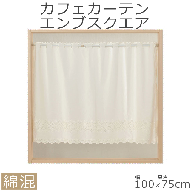 カフェカーテン エンブスクエア 108cm×75cm オフホワイト 08-847