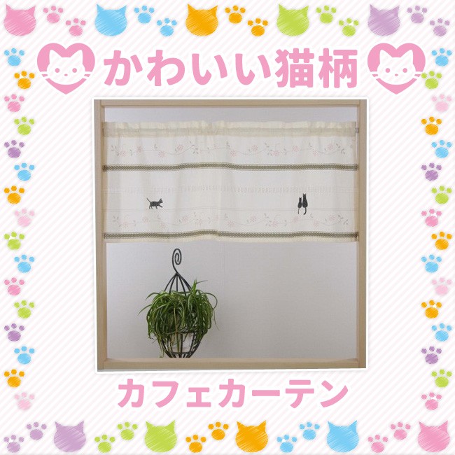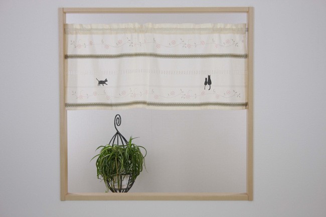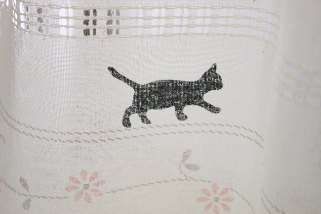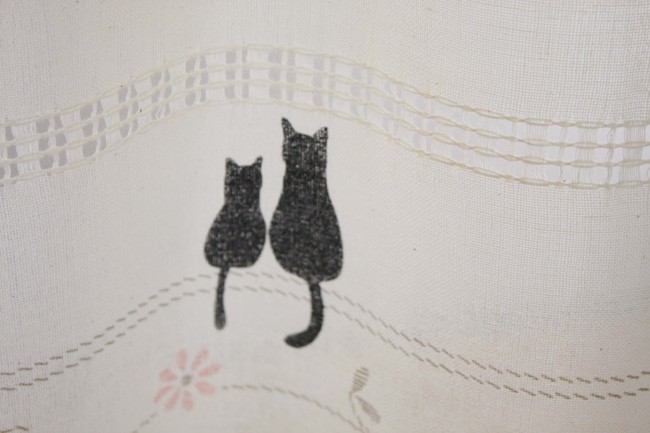 カフェカーテン:かわいい猫柄 ステッチキャット 幅110cm×高さ45cm(ゆうパケット対象商品)