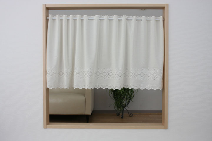 綿混生地を使ったシンプルなデザインのカフェカーテンです。