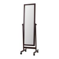 木製レトロ調のスタンドミラーです。両端のネジで角度調整ができ、キャスター付きで移動も簡単です。