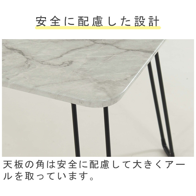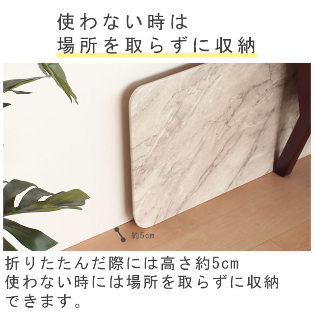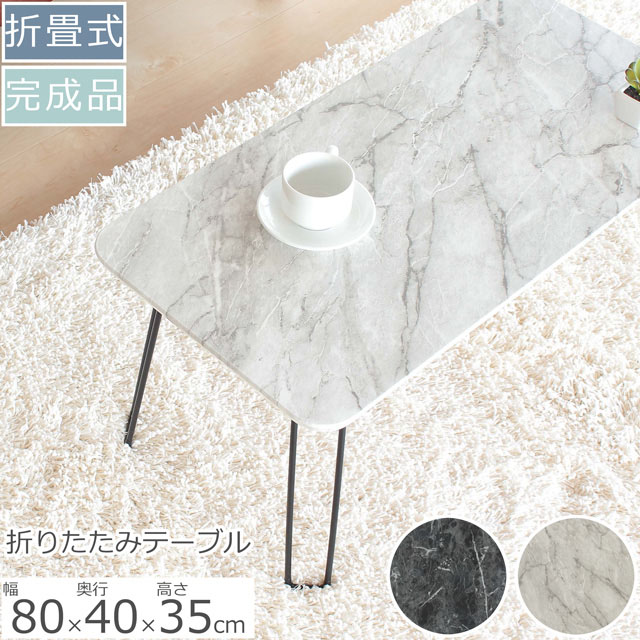 石目白色 テーブル 折りたたみ 折れ脚テーブル ホワイト 横80cm×奥行40cm×高さ35cm 27-413